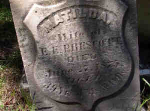 -------------------------------------------------------------------------------- Source Information: Batch No.: Dates: Source Call No.: Type: Printout Call No.: Type: M518495 1867 - 1883 0941634 Film NONE Burial information on findagrave.com Matilda Prescott Birth: unknown Death: Jun. 27, 1875 Inscription: wife of E.E. - age 39 yrs 4 mo 11 da Burial:: Nims Cemetery Pleasant Lake Jackson County Michigan, USA MI from photo of grave on the above entry Matilda Wife of E. E. Prescott Died June 27 1875 Aged 39 years 4M?? 11D?